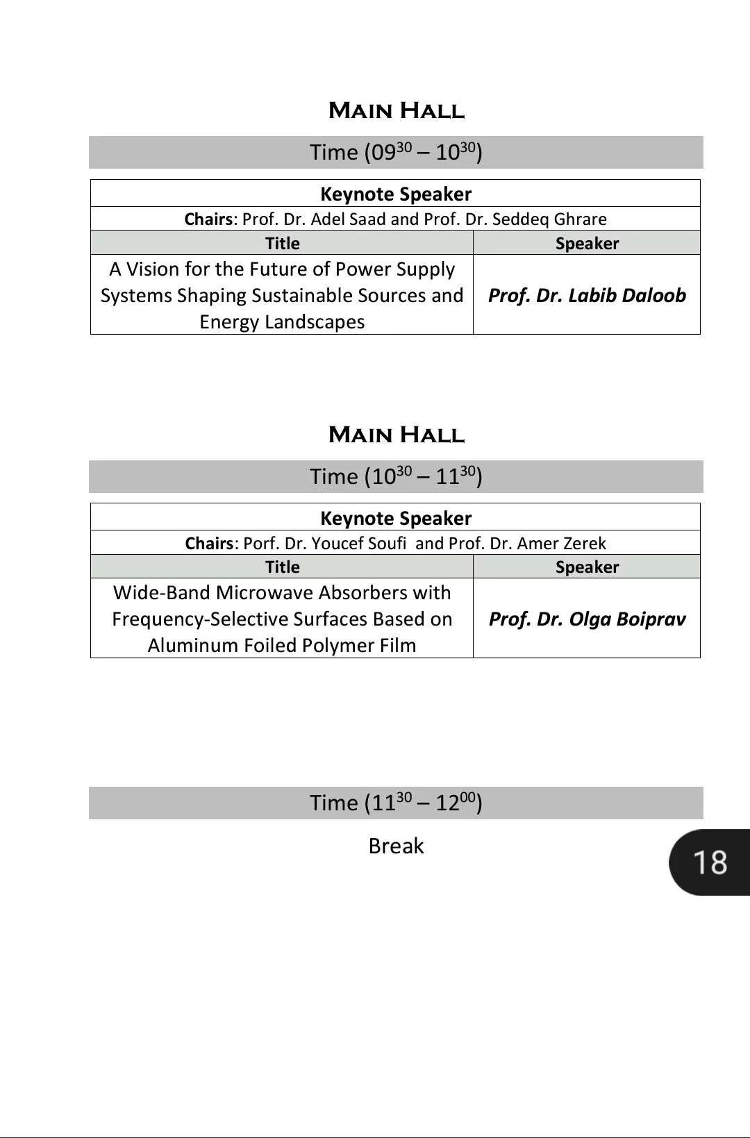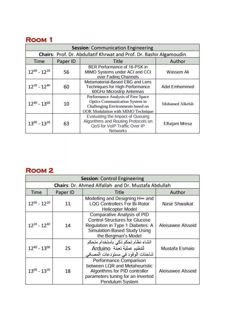 برنامج اليوم الثاني للمؤتمر الأول الدولي للهندسة الكهربائية والالكترونية